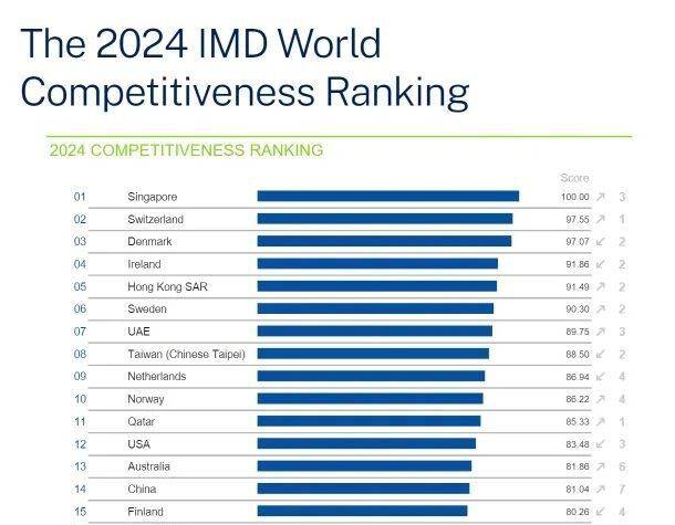 新加坡?lián)碛懈叨劝l(fā)達的自由市場經(jīng)濟,根據(jù)今年6月18日瑞士洛桑國際管理發(fā)展學(xué)院(IMD)發(fā)布的《2024年全球競爭力年報》,新加坡憑借卓越的表現(xiàn),在全球最具競爭力國家的排名中榮登榜首,成為全球最具競爭力的經(jīng)濟體。