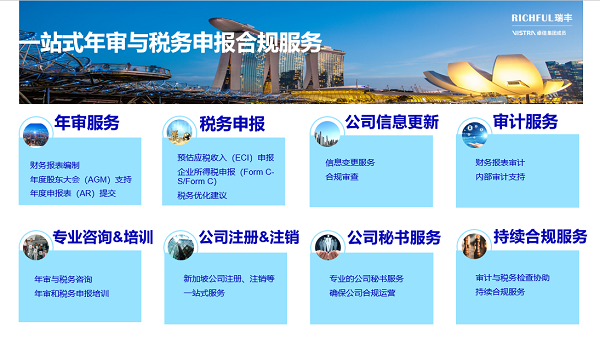 如果您對新加坡年審或稅務(wù)申報有任何疑問,歡迎隨時聯(lián)系我們,RICHFUL瑞豐將竭誠為您提供專業(yè)支持!
